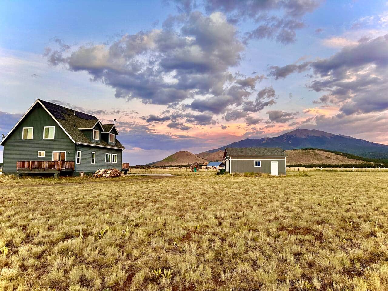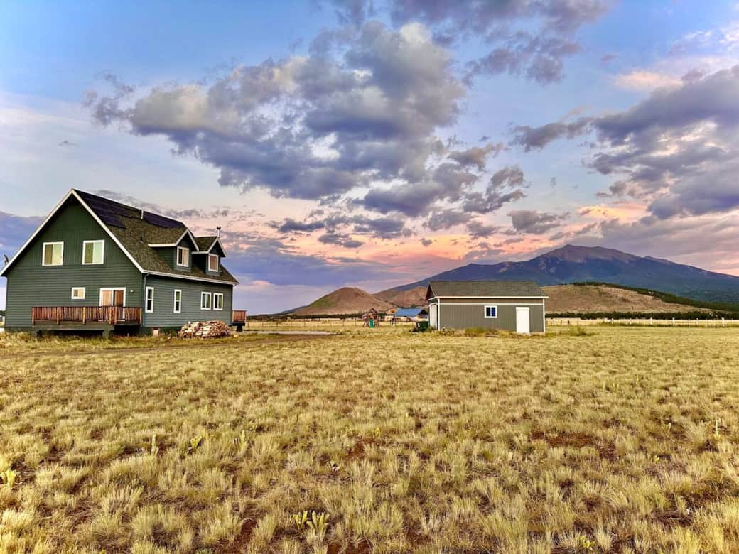 Experience breathtaking mountain views and appreciate the beauty of Flagstaff, AZ, situated on the scenic route to the Grand Canyon, at an elevation of 8,000 feet. This modern A-frame home is set on 5 acres that border the Coconino National Forest. This well-appointed off-grid residence offers modern comforts and reliability. It is less than an hour's drive from the Grand Canyon and is near Flagstaff and Arizona Snowbowl. This home is a stargazer’s dream offering unmatched views of the night sky